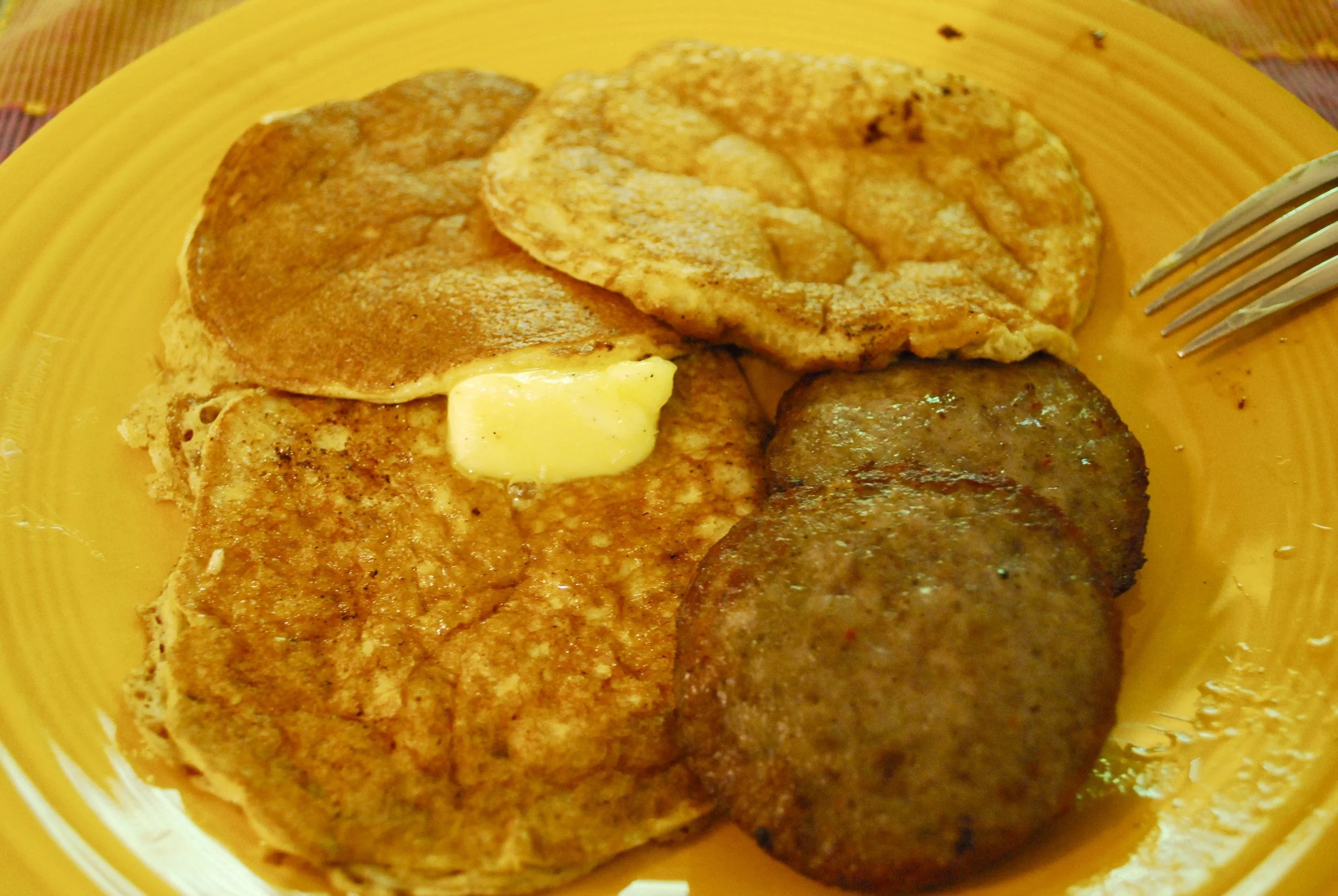 Yum, yum. This recipe makes about 10-12 smallish pancakes, the way I pour them, anyway.